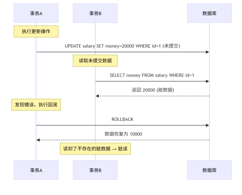 结果:事务 B 读到了一个根本不存在、被撤销的数据