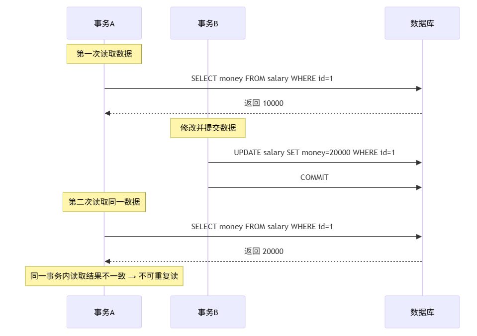 事务 A:第一次读 → 工资 10000