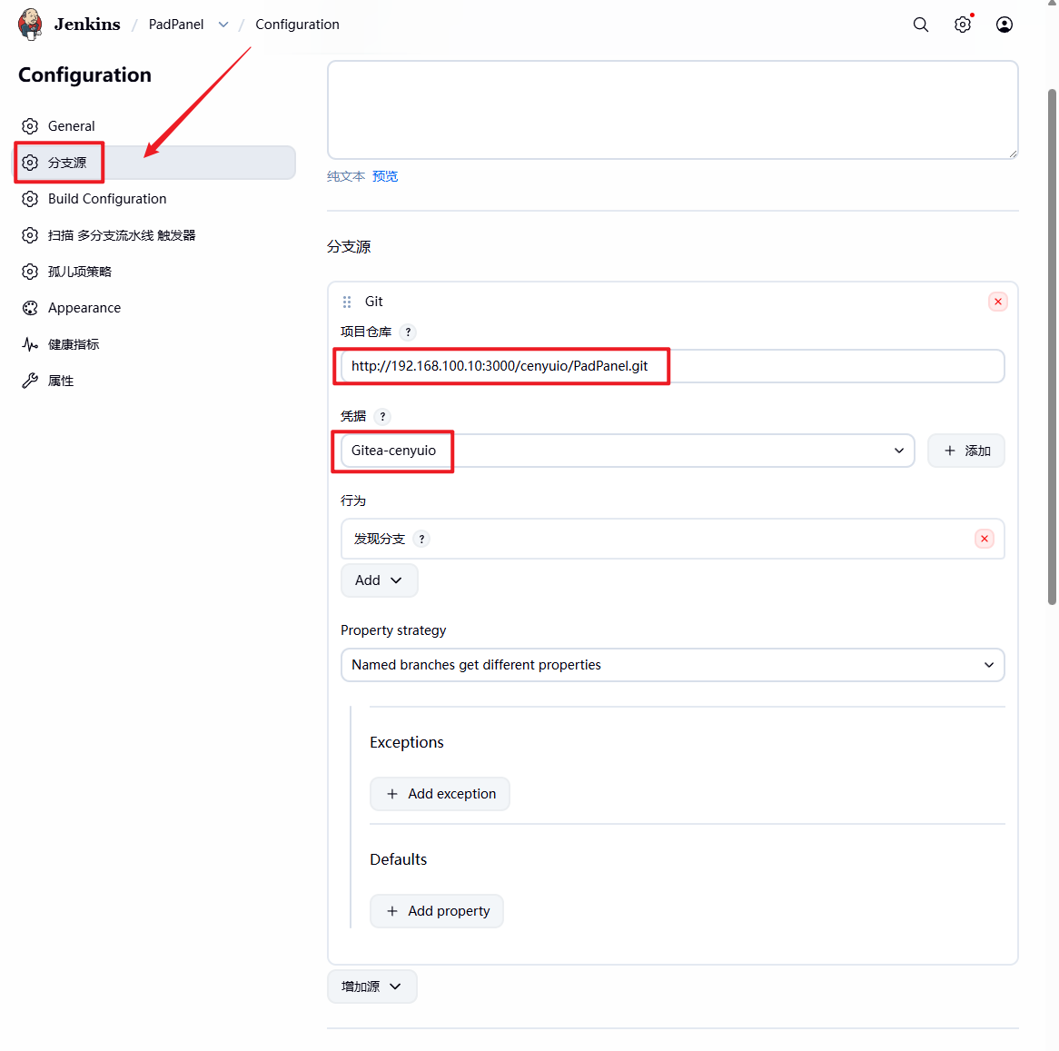 配置 Git 分支源