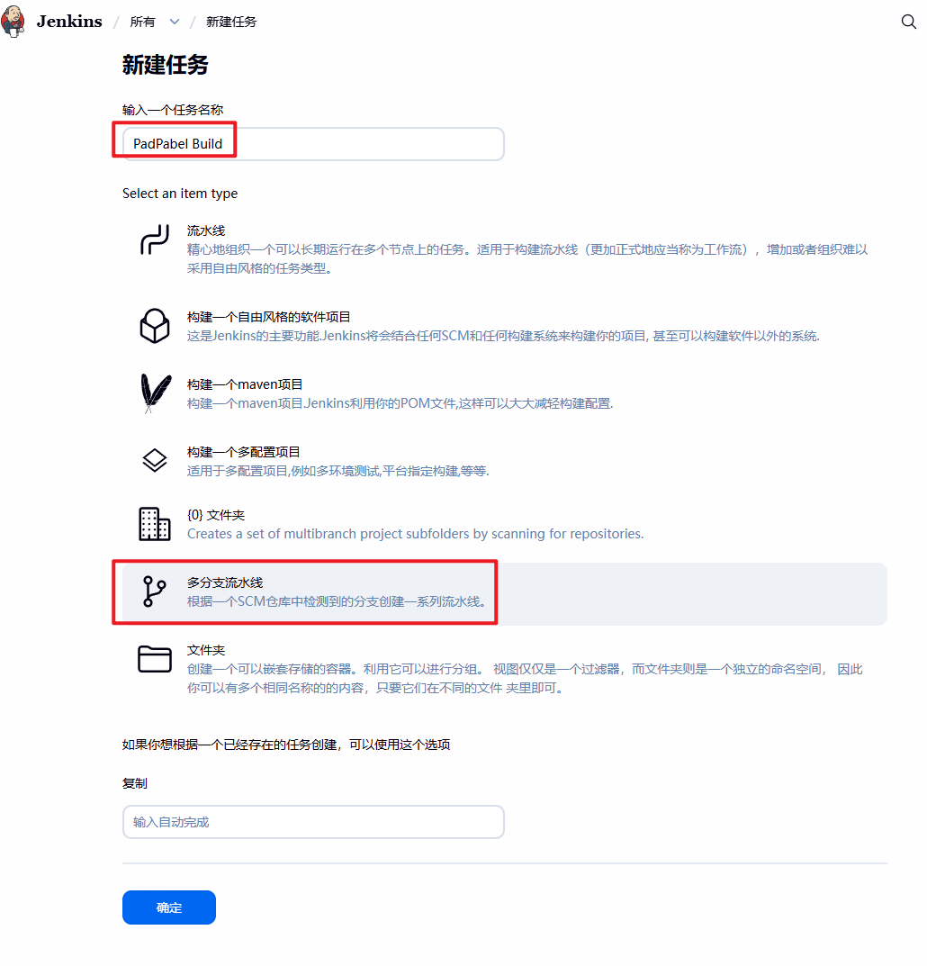 一、创建多分支流水线任务